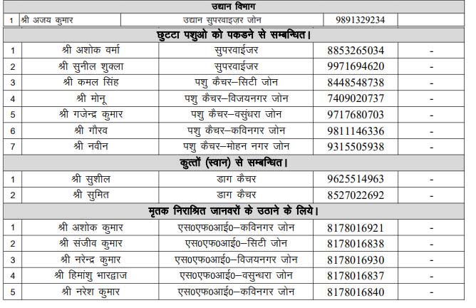 पशुओ एवं उद्द्यान (पार्कों ) से सम्बंधित शिकायत के लिए